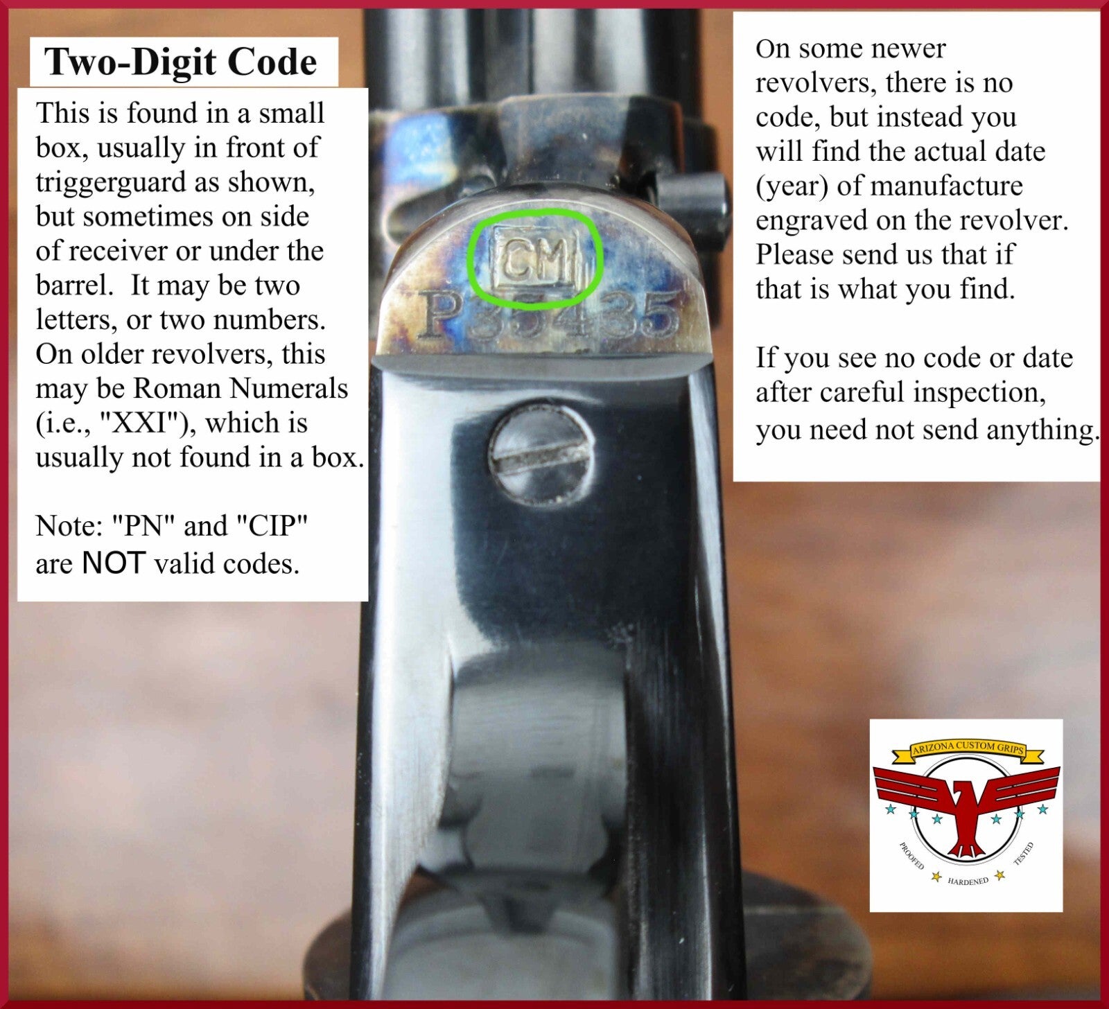 your revolver has a two-digit code inside a small rectangular box (as shown in