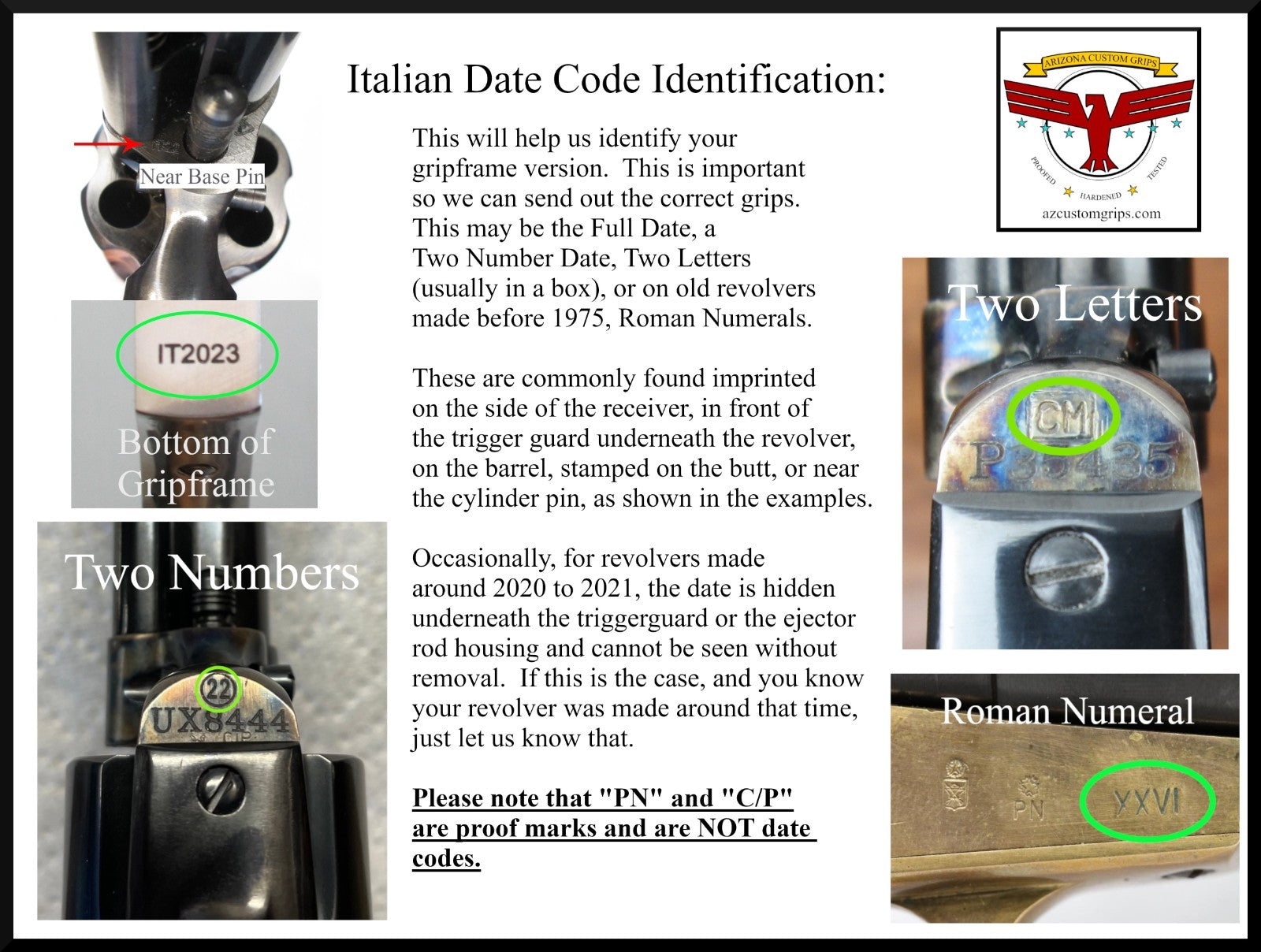 2)  Please send us the date code of your revolver.  Please see the other picture above showing what to look for.  If you cannot find the date code, please let us know that (there were a few years where the code was not put in a visible place, so knowing that will give us the information we need to determine the proper grips).