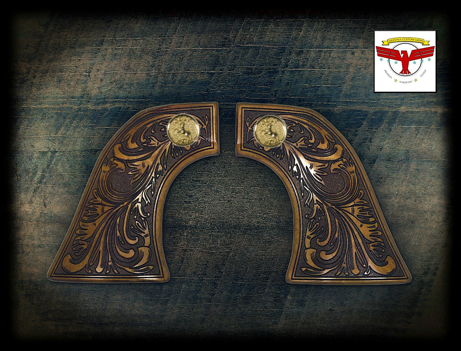 UBERTI SAA ONE-PIECE STYLE SINGLE ACTION ARMY AGED FLORAL GRIPS ~ Cattleman, etc